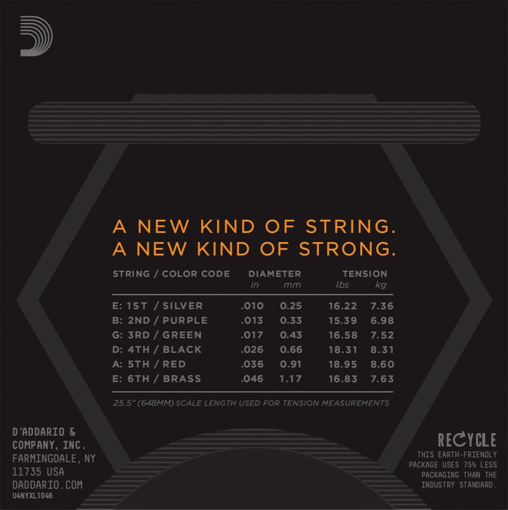 Dette er det sterkeste sett med el.gitarstrenger D'Addario noensinne har produsert. Mere holdbart enn alle sine forgjengere, setter seg raskere når du strenger om, holder stemmingen bedre, spunnede strenger som har mere output og plain strenger som er mindre platte (lydmessig) og mere livlige. Resultatet er noe du aldri har opplevd tidligere, uovertruffen holdbarhet og stemmingsstabilitet. PLAY LOUD, PLAY STRONG, PLAY FEARLESSLY!